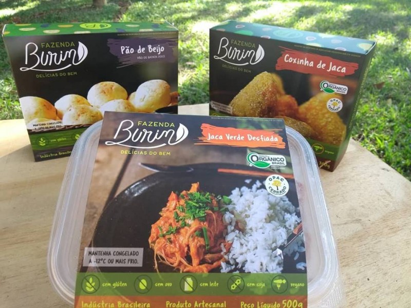 Pão de beijo, coxinha de jaca e jaca verde desfiada.